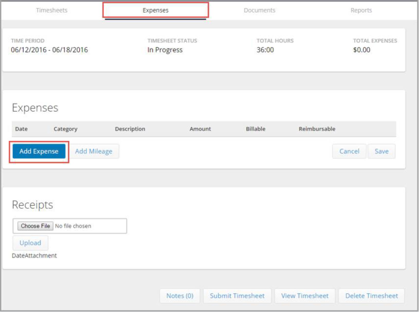 1. In your timesheet portal, select the Expenses tab.